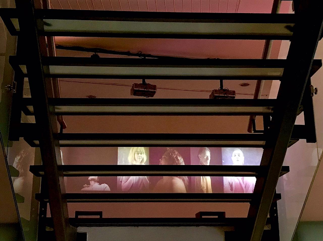 O palco está vazio, na grande maior parte do tempo, com cadeiras, nas duas coxias aparentes, para o descanso